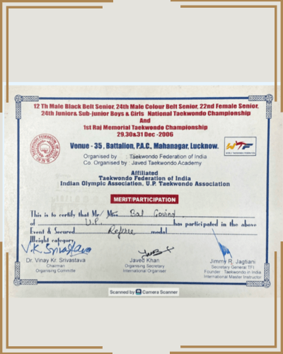 Guruji Bal Govind is a 4th Dan Black Belt and a highly respected martial arts teacher with more than 30 years of experience in training and mentoring students. Over the course of his career, he has trained 50,000+ students, guiding them in physical fitness, discipline, self-defence, and mental strength.